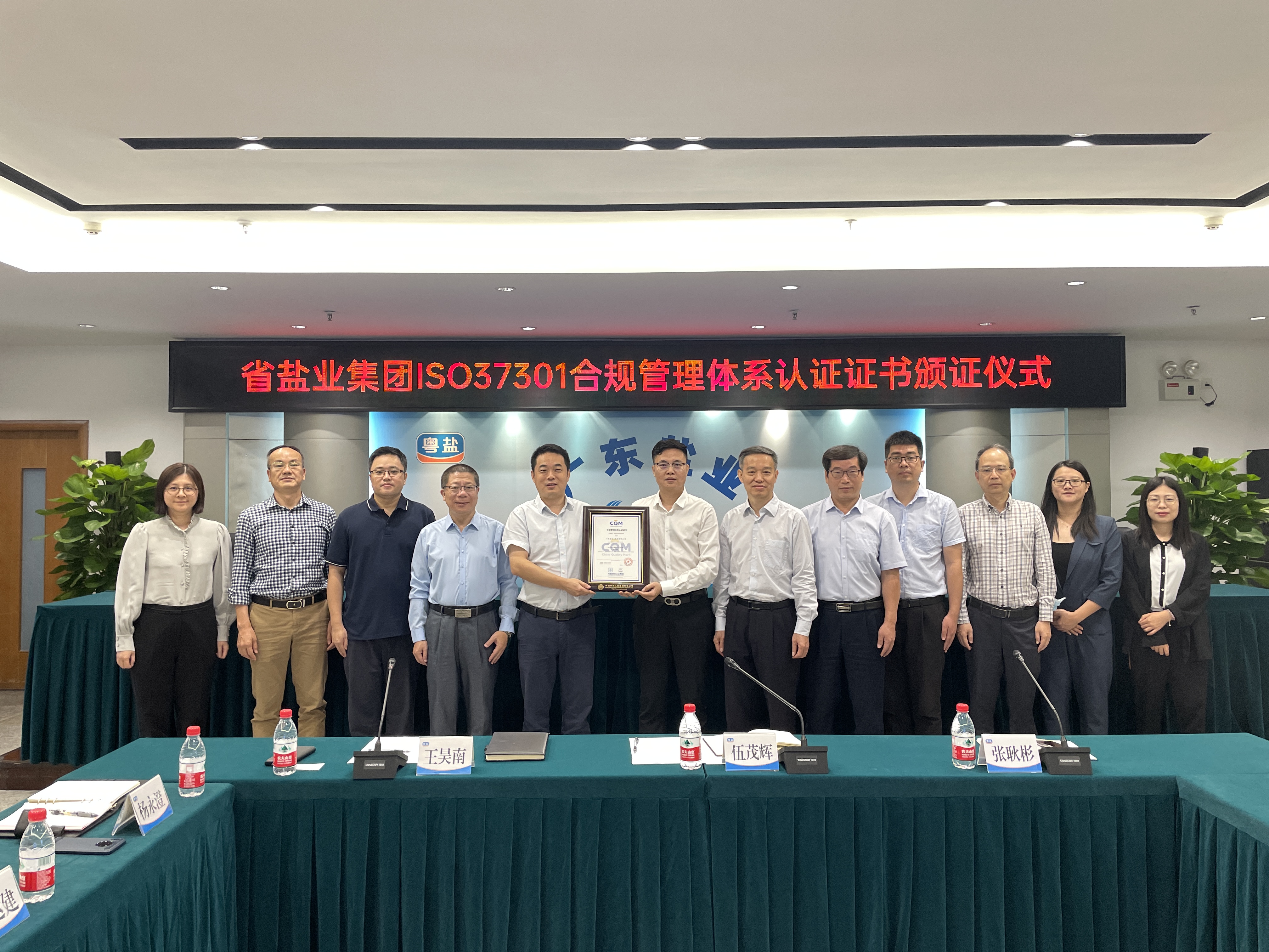 CQM方圓廣東公司為鹽業(yè)集團頒發(fā)ISO37301合規(guī)管理體系認證證書